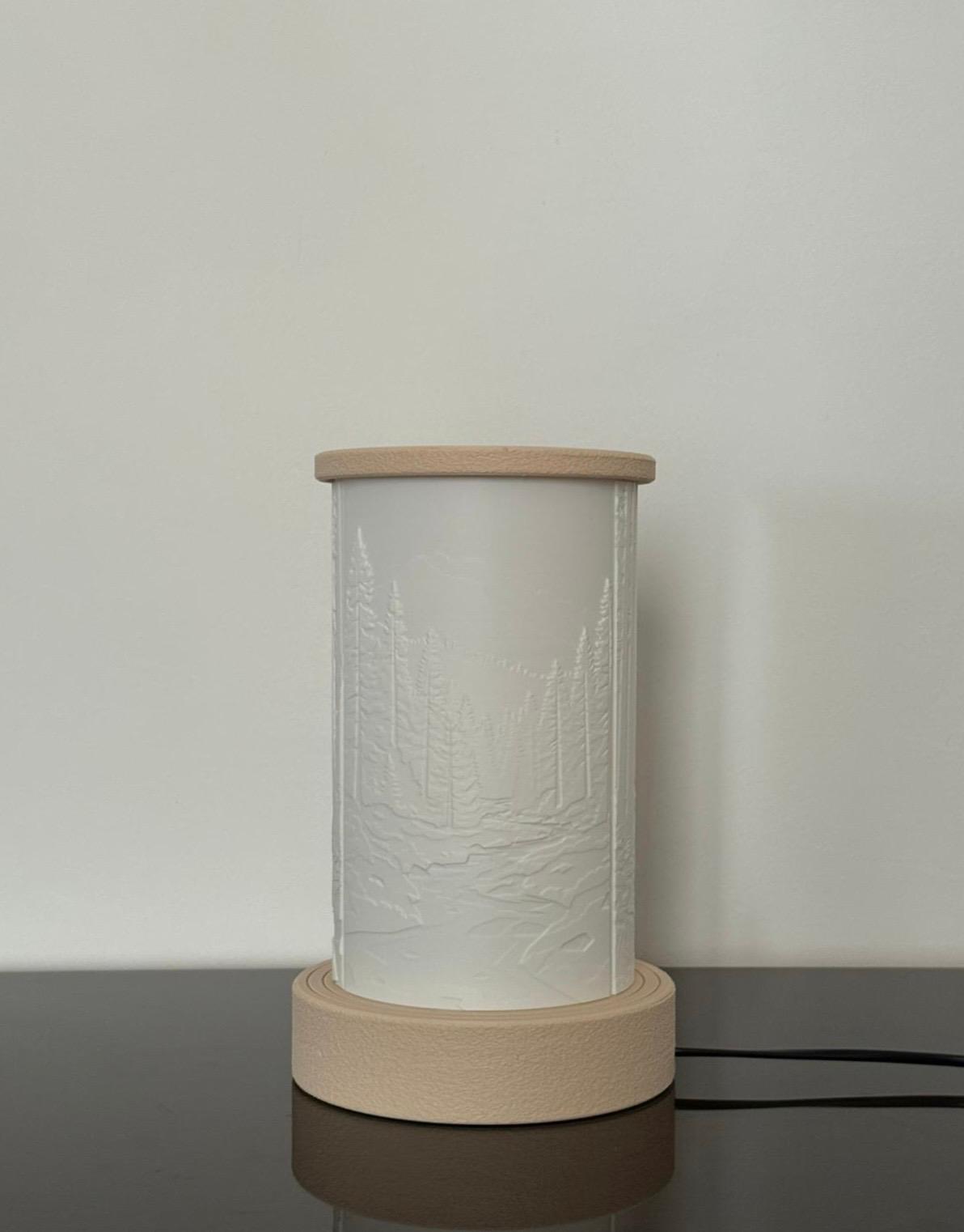 Cette lampe révèle une image uniquement grâce à la lumière. Éteinte, la lithophanie apparaît entièrement blanche et minimaliste. Allumée, les reliefs imprimés en très haute précision laissent passer la lumière et font apparaître progressivement la scène en nuances naturelles. Chaque pièce est fabriquée en France par impression 3D et assemblée à la main. Objet décoratif et lumineux conçu pour une diffusion douce et homogène. Le couvercle et la lithophanie forment un ensemble solidaire et ne doivent pas être séparés. La lithophanie est en revanche amovible du socle inférieur, conçu pour être démonté avec précaution. Produit décoratif fragile, à manipuler délicatement.